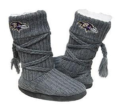 Keep warm this season with some team spirit and these Ladies' Knit Boot Slippers by Forever Collectibles. Featuring an embroidered team logo on the front and a drawstring enclosed fleece top for a double dose of pride! These stylish boots are just the remedy for cold, winter days. Fleece lined. Foam Soles. 100% acrylic. Officially licensed