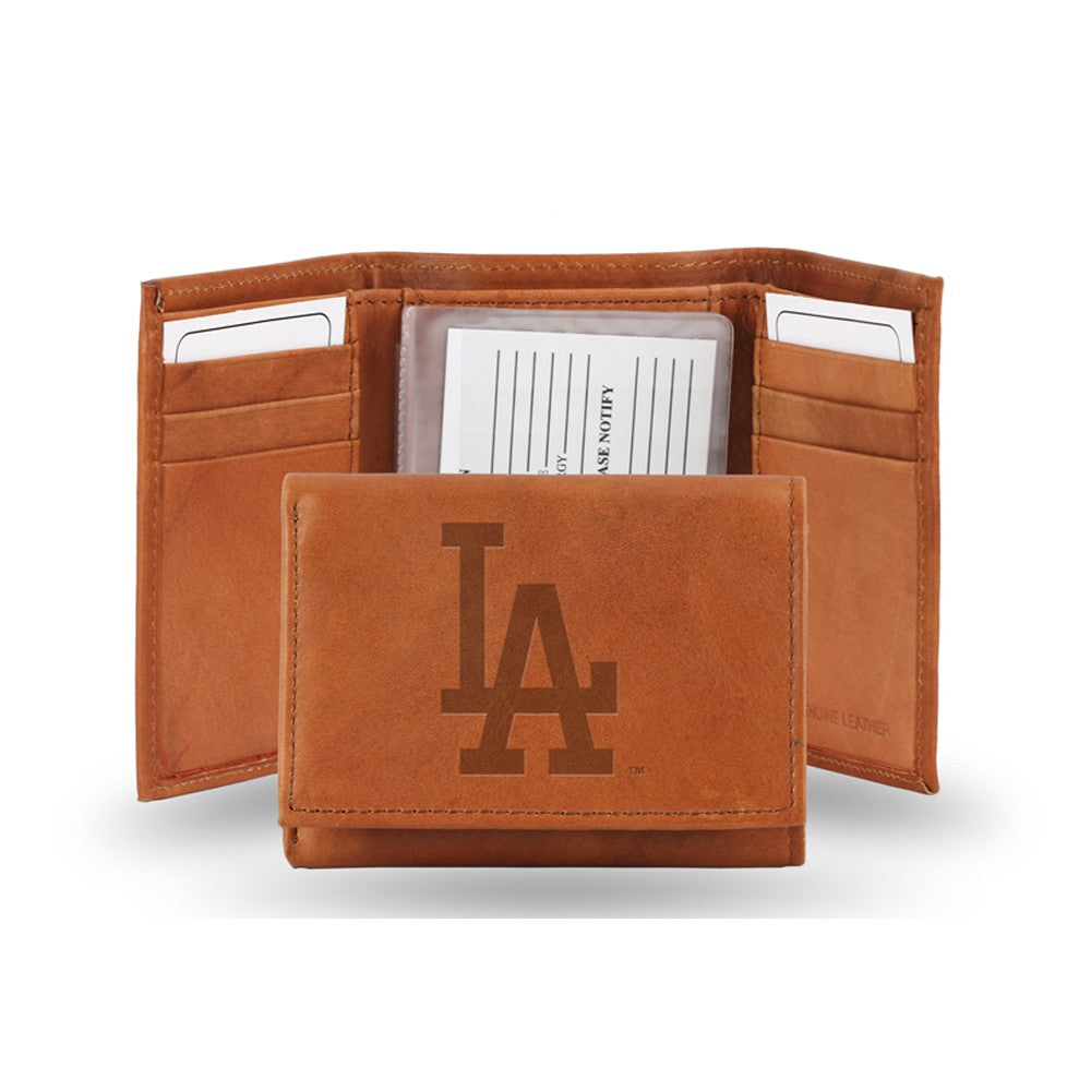 Los Angeles Dodgers Embossed Genuine Leather Trifold Wallet - Pecan Brown