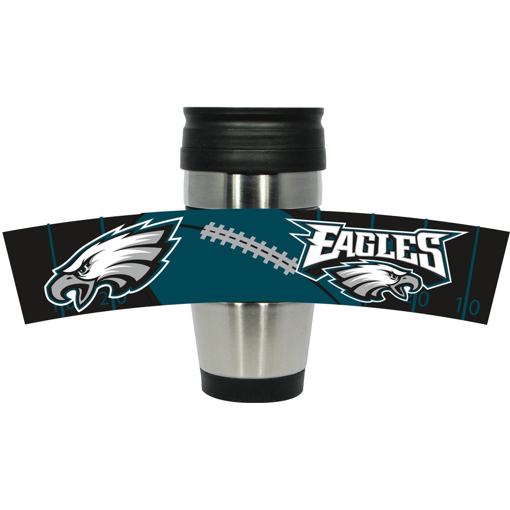 This stainless-steel Travel Mug is ideal for the fan on the go. Features a PVC wrap band with team logo. Holds approximately 15 ozOfficially Licensed ProductMade by Hunter mfg.