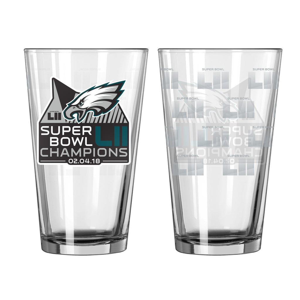 Celebrate with the 2018 Super Bowl LII Champions Philadelphia Eagles with a Philadelphia Eagles Super Bowl LII Champions 16 oz. Satin Etch Pint Glass!